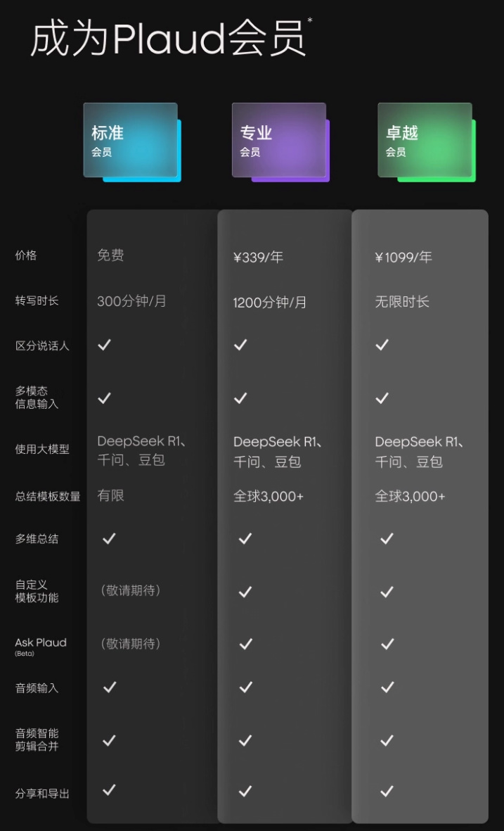 想要無限制的轉換錄音的話,一年得多花 1099 塊錢,這塊的性價比屬實不高了。
