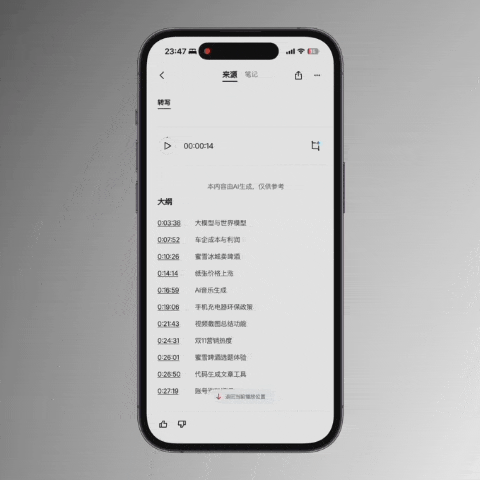 Plaud 就會自動高亮這一分鐘的錄音,方便咱們回頭查找。