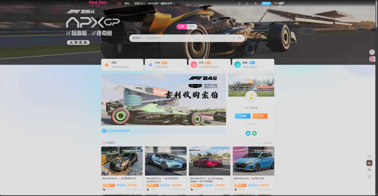 Modfans,在赛车类游戏方面的mod资源尤为丰富,如F1车队经理2024