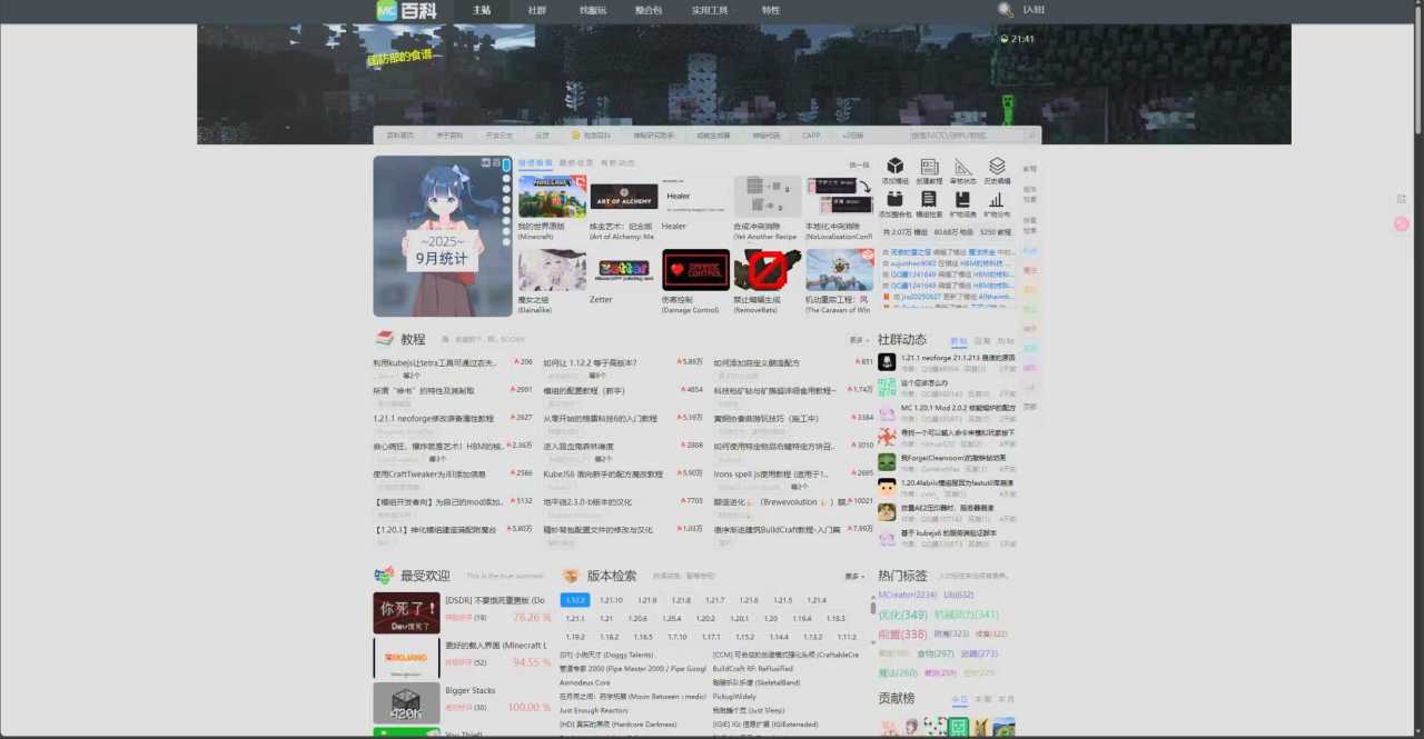 也是小黑盒里比较热门的一个mod网站了,被称为三大妈,画面简洁明了,包含了整合包,wiki,文章以及mod管理器,可以说是相当全面