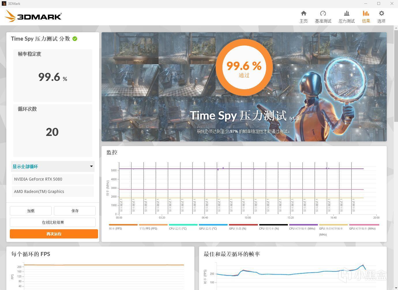 ▼跑个3Dmark的压力测试,TS模式,帧数稳定率在99.6%,非常稳定。