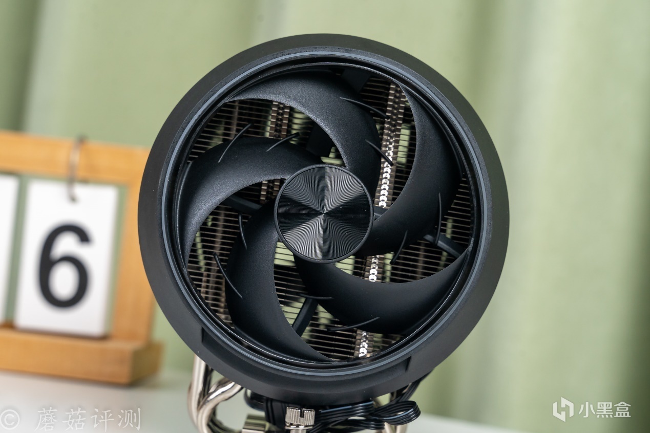 ▼散热风扇扇叶的造型,和前面的扇叶是一样的,扇叶尾部也连接到一个圆环上,扇叶上有鳍片。
