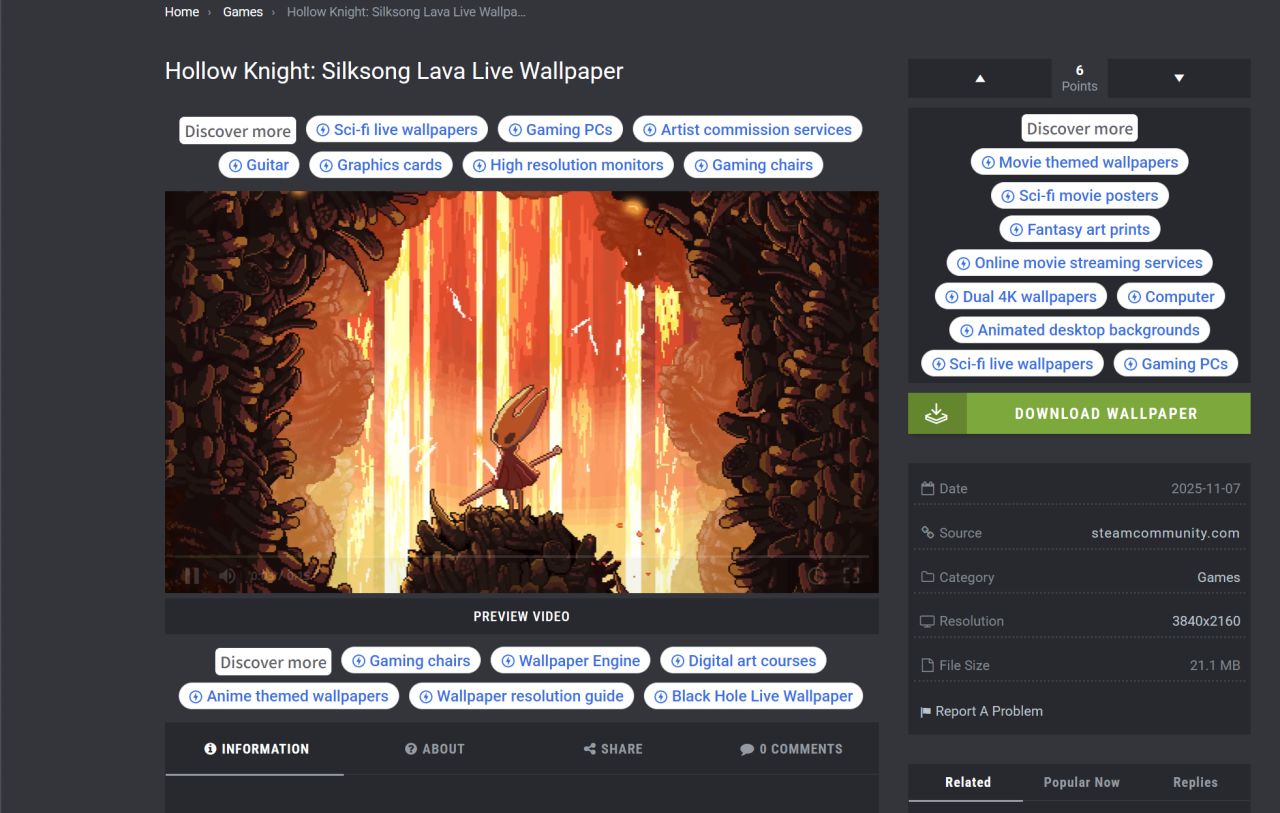 但需要注意的是,你下载了壁纸文件后,还需要配合专门的动态壁纸软件来使用,比如 Steam 上的 Wallpaper Engine等。