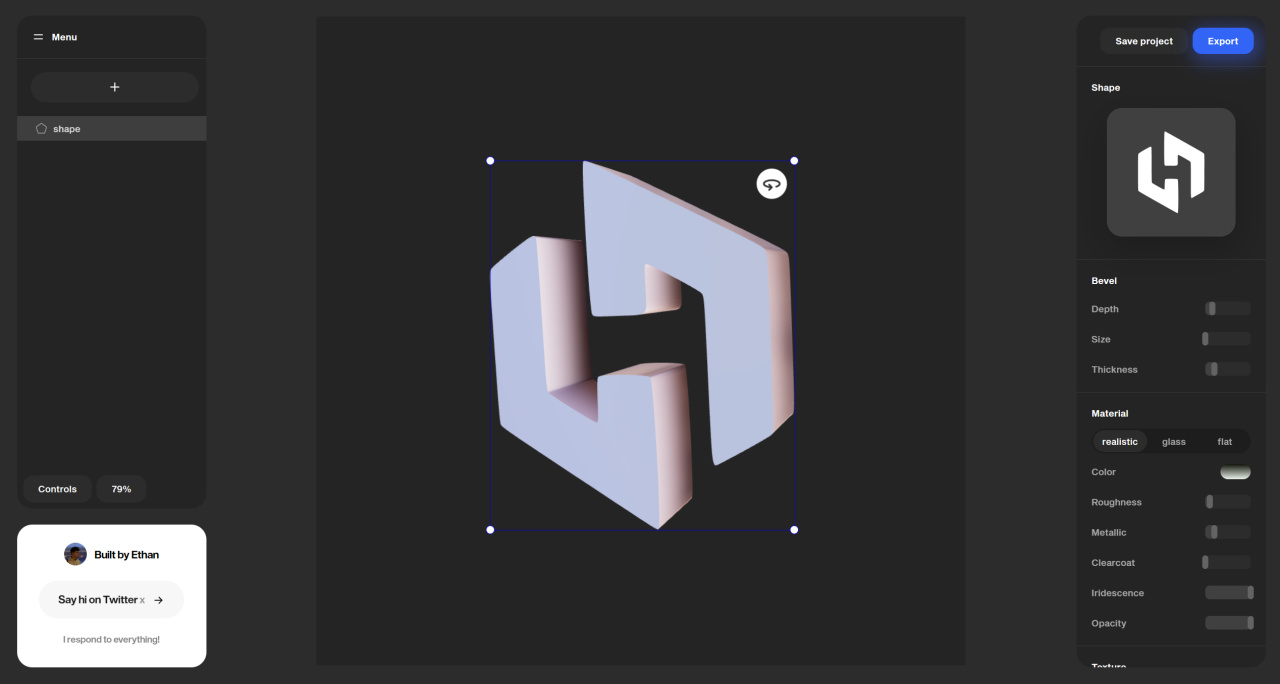 甚至可以制作一段Logo 360度旋转的展示动画视频并下载。(保存项目,导出3d模型和更高画质需要会员)。
