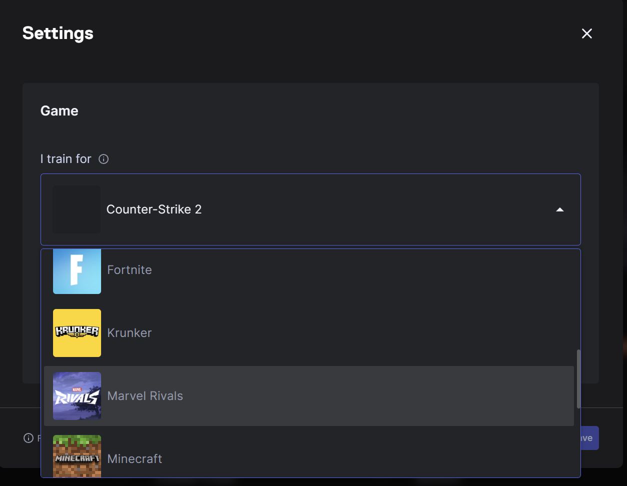最独特的一点就是可以选择模拟游戏,比如选择漫威争锋,训练时就是第三人称的越肩视角;选择cs,训练时就是第一人称。