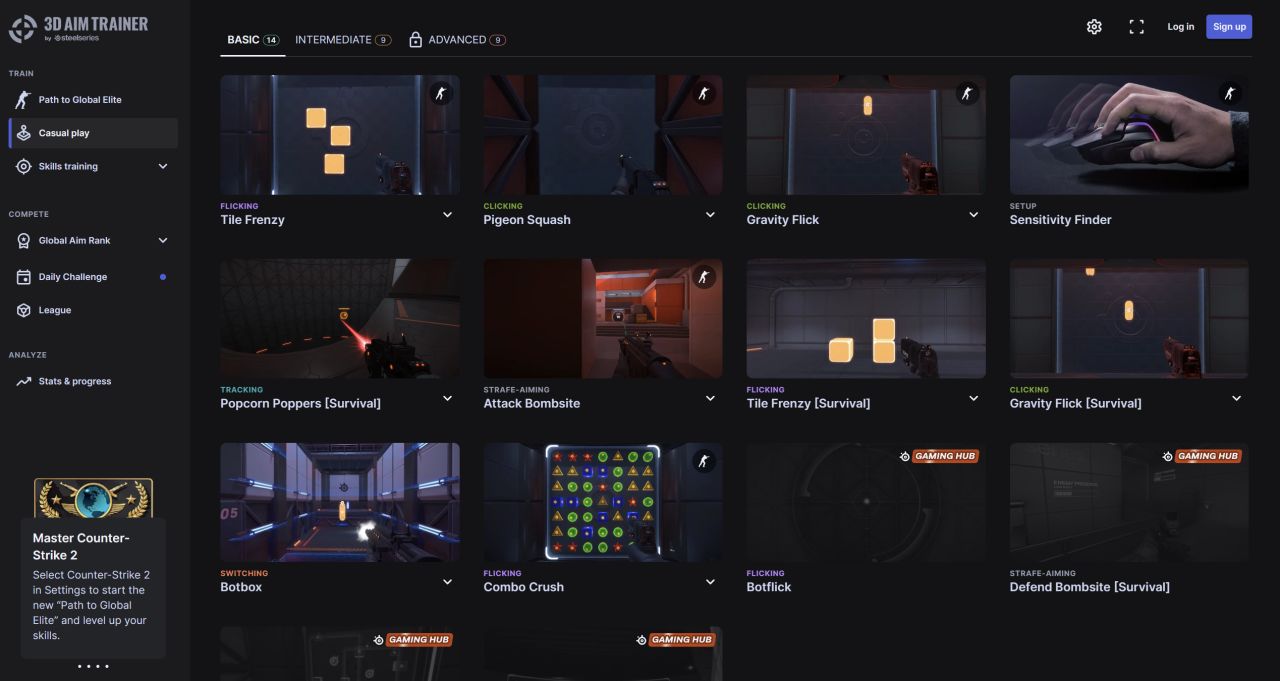 它有多种练习模式,比如专门练习快速定位的Flicking,或是练习持续追踪的Tracking等。