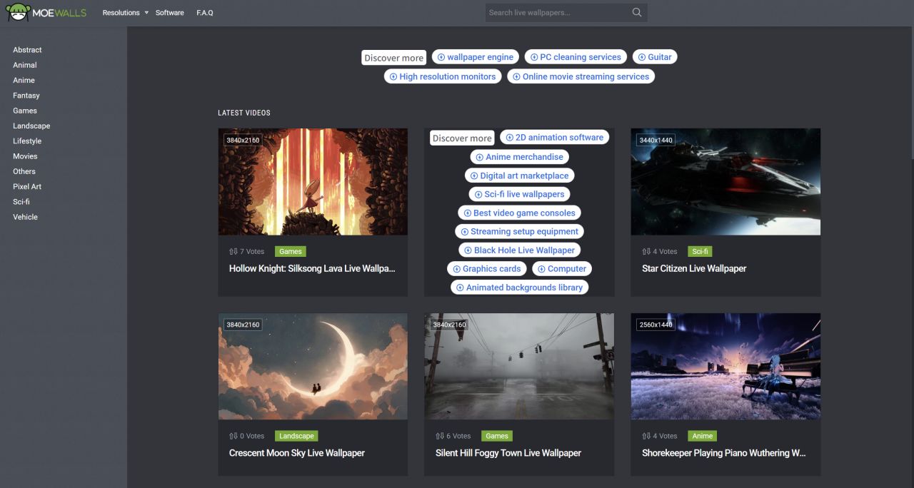 moewalls是一个专门提供高质量动态壁纸的资源网站。
