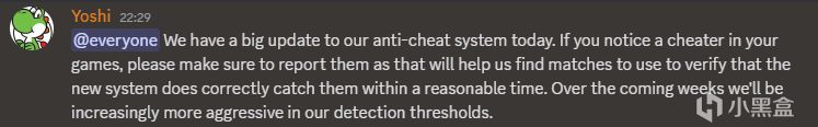我们今天对反作弊系统进行了重大更新。如果你在游戏中发现作弊者,请务必进行举报,这将帮助我们找到相关对局,用来验证新系统是否能够在合理时间内准确识别他们。未来几周内,我们将会逐步提高检测的严格程度。