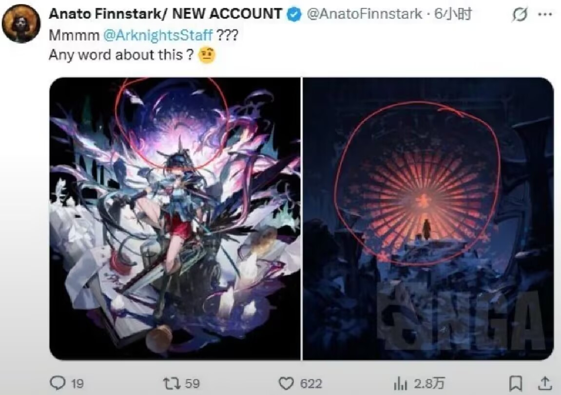 简单说一下煌皮肤侵权事件。推特画师发现煌皮肤背景的图案抄袭了自己画的图。原画师Anato Finnstark发现后很生气骂了YJ。