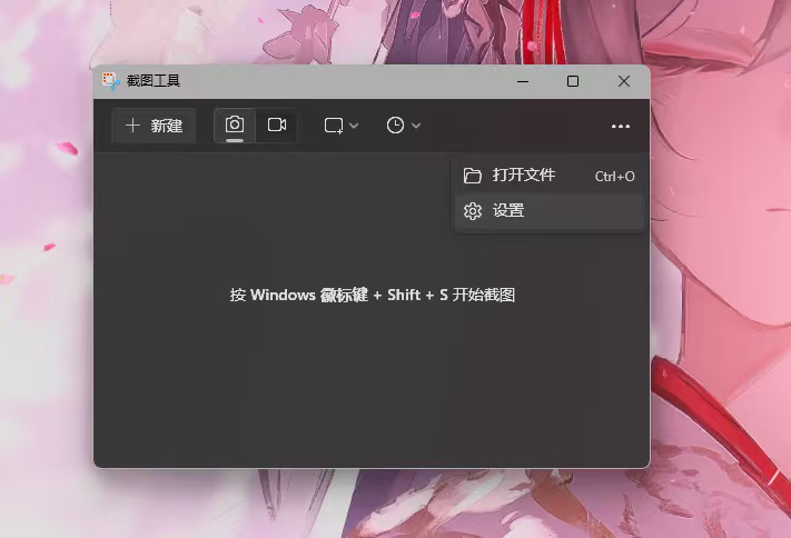 出现截图窗口后,点击右上角的三个点,进入设置界面