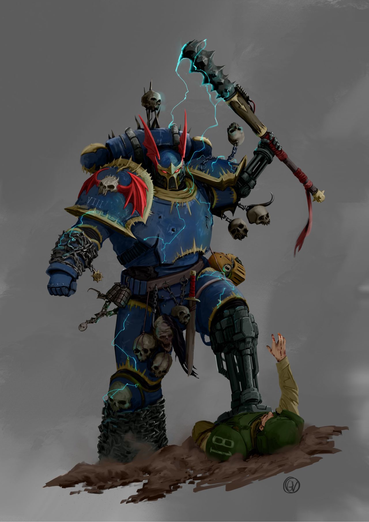 這是一次受託創作,描繪的是那些古老而邪惡的巫師——混沌星際戰士·千子。