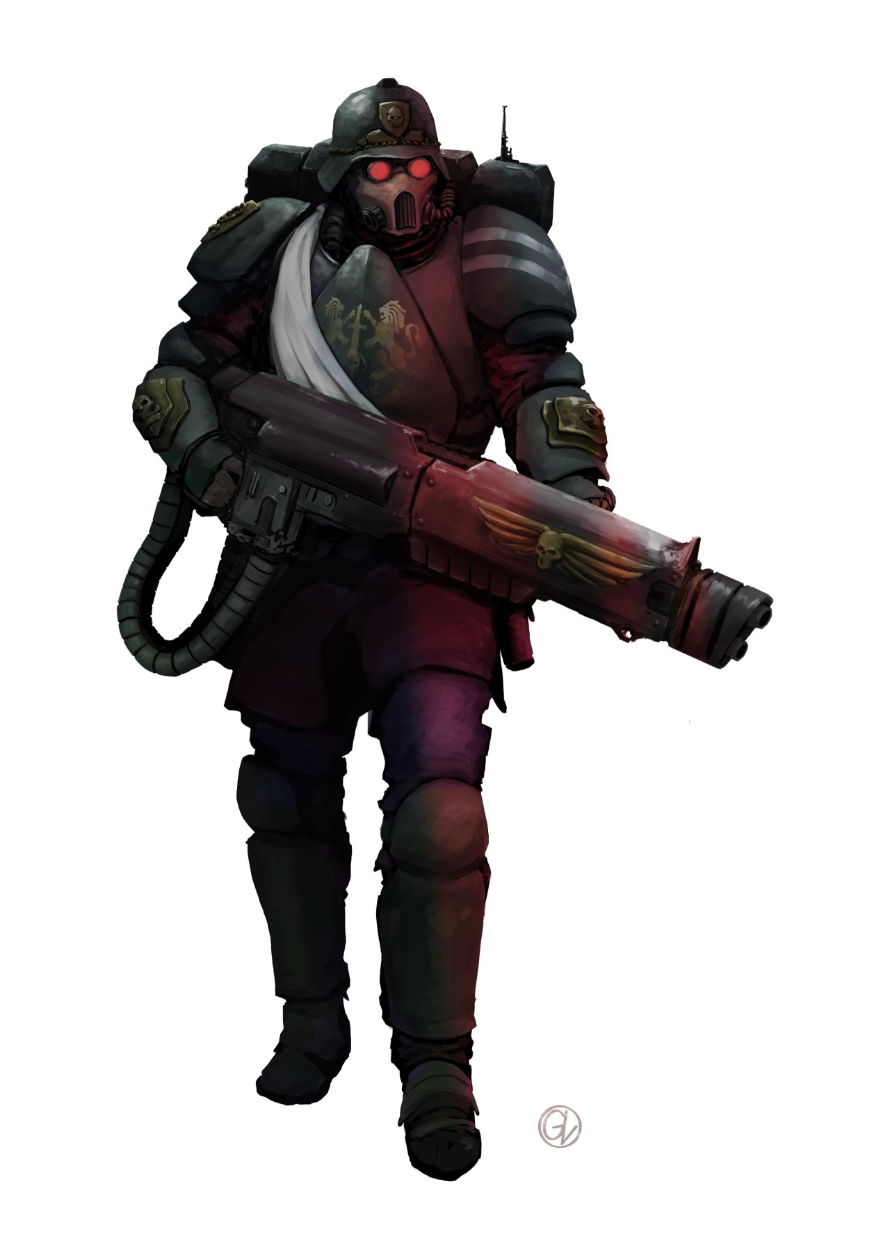 他們是火蜥蜴(Salamanders)的一個繼承戰團,出身於冰封的死寂世界卡戎的安息(Kharon’s Rest),在那裏唯有強者方能存活。身爲等離子武器戰的行家,他們在戰場上揮灑熾白的毀滅之火——武器燃燒得就像孕育他們的鑄造世界般熾烈。