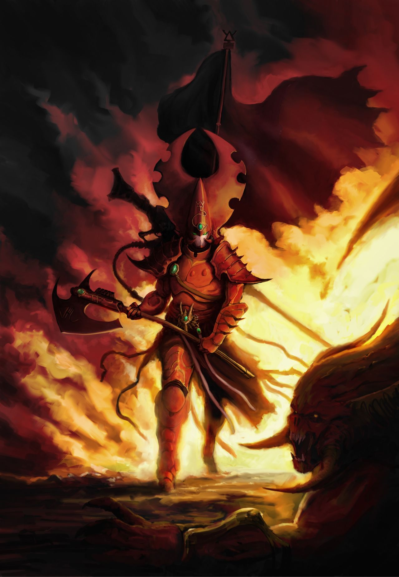 Fuegan 是埃爾達的不朽兵主(Phoenix Lord)之一,統領火焰巨龍(Fire Dragons)兵堂,招牌裝備是熔融槍/熔融矛,擅長近距離反裝甲與焚燬目標。在設定裏,他象徵堅忍與復仇之火,常被畫在火海與熔光的暖色調場景中。