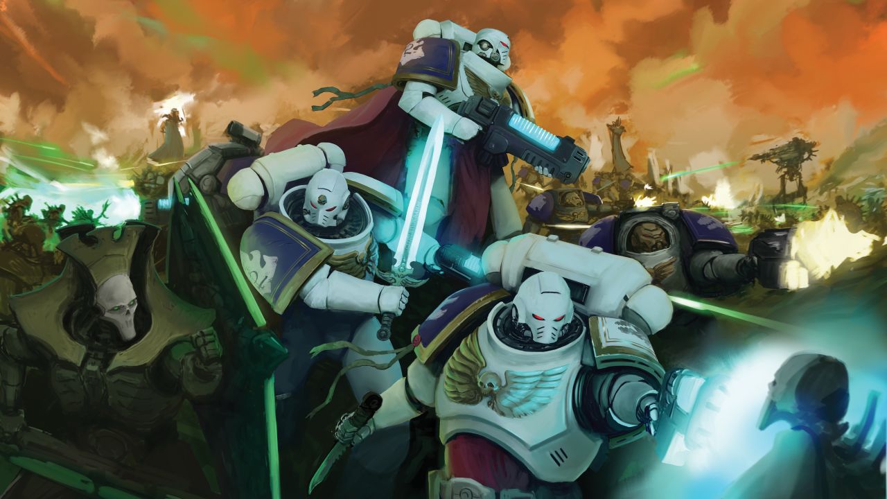 在梅里亞斯九號(Meriath IX),達摩克利斯小隊(Damocles Squad)的三名戰士擔任先鋒,對抗薩瑞坎王朝(Szarekhan Dynasty)。在**老兵終結者(Veteran Terminators)與救贖無畏機甲“Ferrum Annihilus”的側翼掩護下,他們一路殺入死靈(Necron)**方陣的心臟。即便被重重包圍、寡不敵衆,白顱仍未折服,持續前壓——每一次射擊都如熾焰,見證着他們的反抗。
