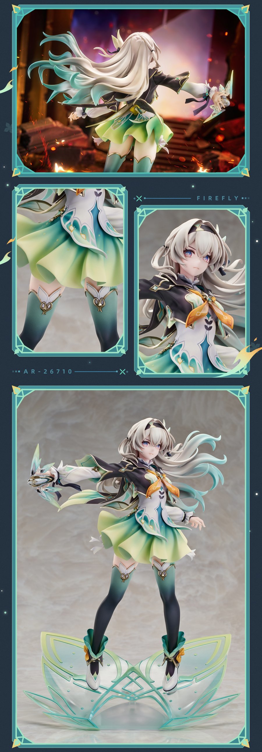 《崩壞:星穹鐵道》攜手GSC推出「流螢1/7手辦」,復刻角色經典姿態。角色手持變身器,長髮與裙襬隨迎面風勢翩然揚起。