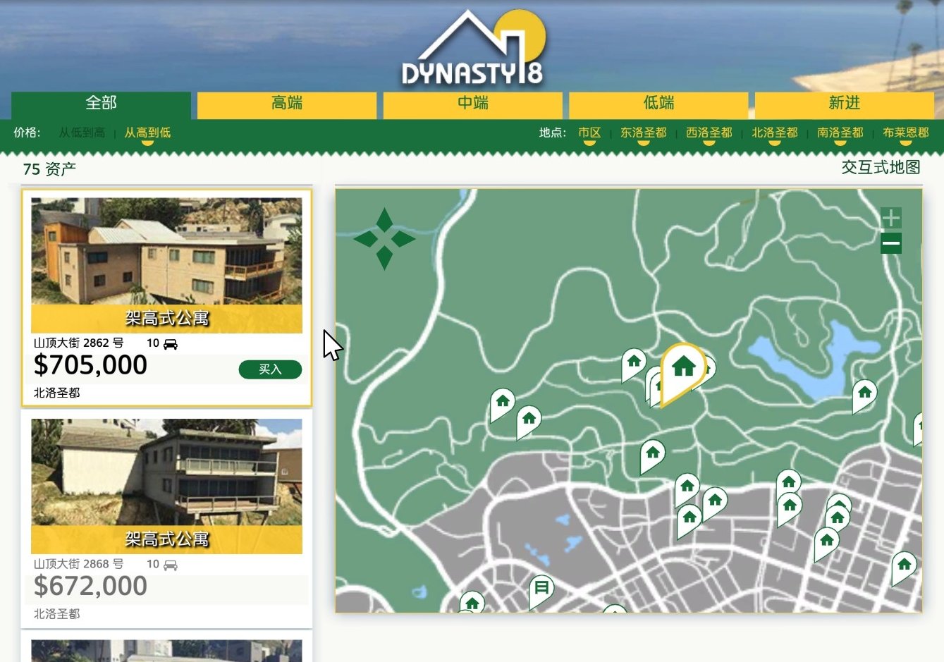 目前已经知道两处豪宅位置如下。