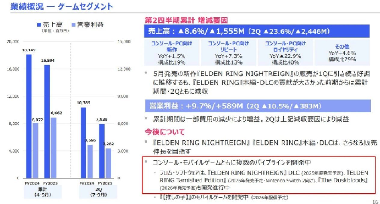 在《黑夜君臨》之外,FromSoftware目前已知的項目還包括Switch 2平臺作品《黃昏血族》以及一款未公開的多平臺新作。
