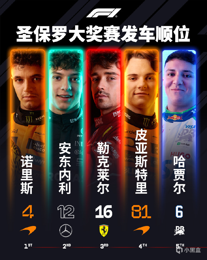 諾里斯領先皮亞1分,領先維斯塔潘36分,三人都有機會拿下冠軍!