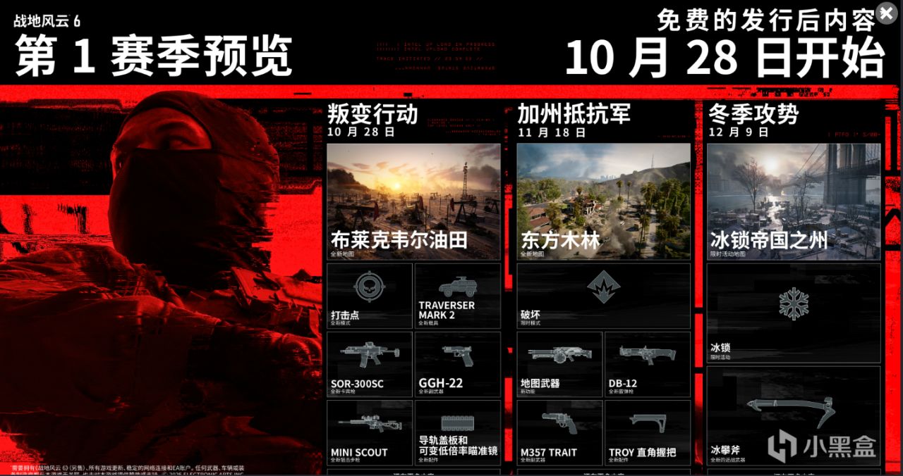 來自EA的官方消息,《戰地風雲6》第一賽季於2025年10月28日正式更新。