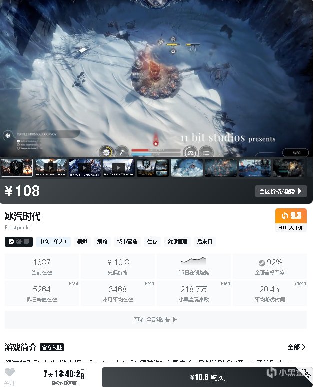 自從正式推出後,Frostpunk(《冰汽時代》)增添了一系列的DLC內容。全新的Endless Mode (無盡模式)(其中包含了3種玩法)大大增加了遊戲的重複可玩性。全新場景-The Fall of Winterhome(《冬日之家的隕落》)進一步擴展了遊戲的世界觀與背景故事。除此以外,我們還爲遊戲添加了類似自定義角色與機器人以及照相模式等等的小點綴。所有擁有遊戲的玩家都能夠免費享受這些內容。拋開這些,我們還爲遊戲製作了三個擴展包,這些內容都包含在了付費Season Pass(季票)內。我們希望大家能夠明白,雖然對於我們來說,這段旅途已經結束,我們不會再爲冰汽時代製作更多內容,但是未來可期,請一定要繼續關注我們之後的遊戲。當然,我們依舊會爲冰汽時代製作修正補丁,並且我們也將依舊爲玩家們提供相關的技術支持。