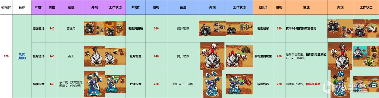 每個基本單位存在3種進階方向,具體可見階段一的“定位”列。