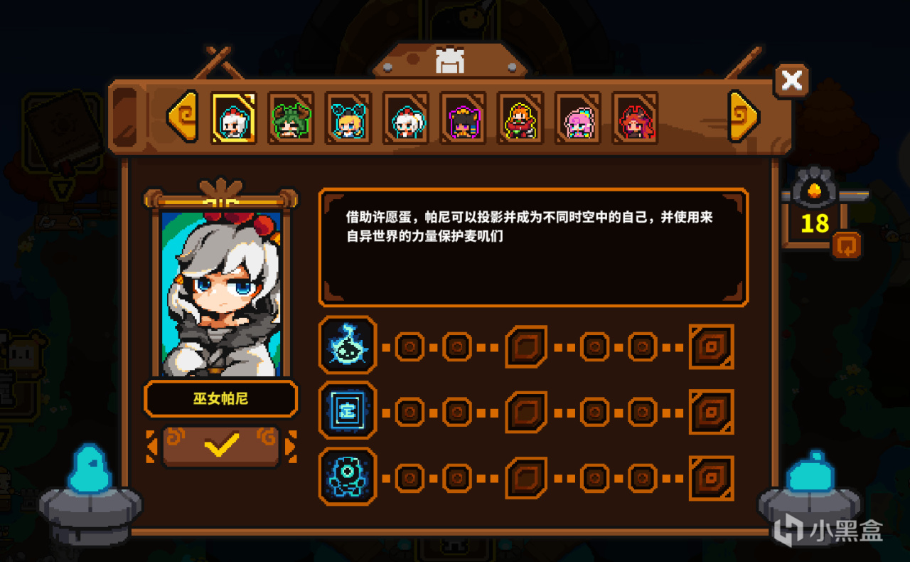 再來說英雄,初始自帶的巫女帕尼用到畢業,完全沒問題。