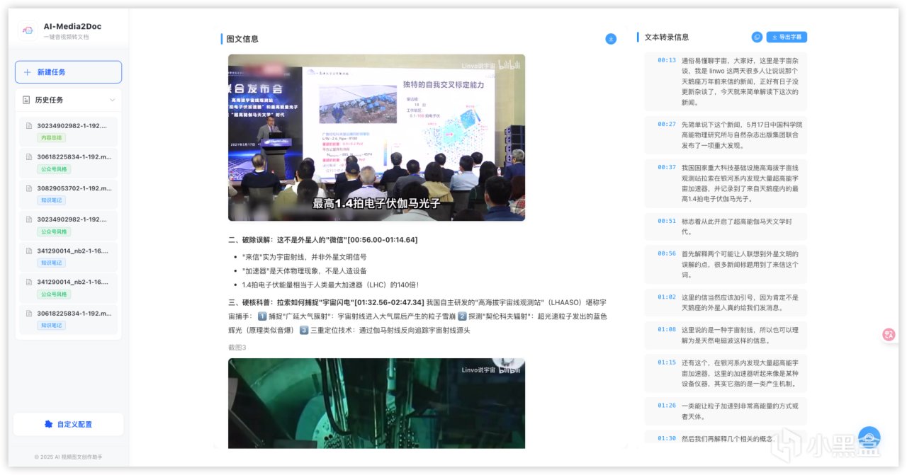 在内容创作过程中,将视频和音频整理成结构化文档一直是耗时任务。传统方法往往需要手动听写、整理笔记或截图,效率低且容易出错。AI-Media2Doc 为创作者提供了一种高效方案,它基于 AI 大模型,可以一键将视频和音频内容转化为不同风格的文档,无需登录注册,同时支持前后端本地部署,保障隐私安全。无论是小红书运营、公众号创作,还是知识整理和思维导图制作,都能在低成本下快速完成内容生成。