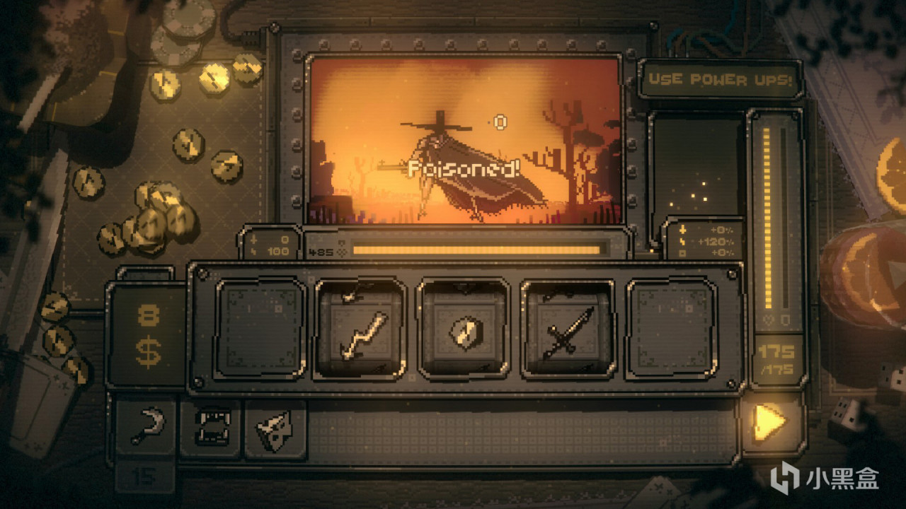 這是一款融合復古風格與迷你肉鴿玩法的老虎機遊戲。握緊匕首——開始旋轉輪盤吧!