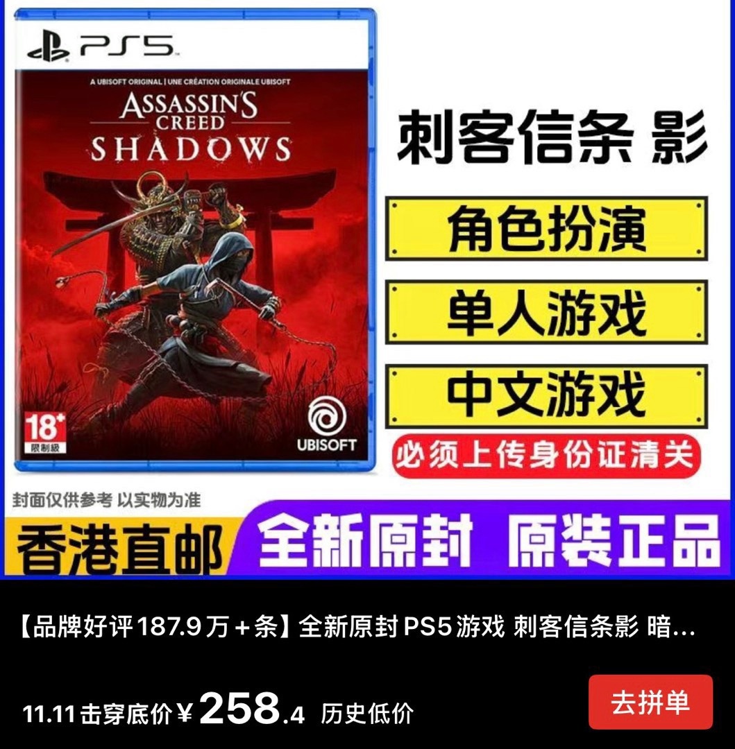 刺客信条影作为超级稳定的一张盘,之前也说过它超长待机式的梯田价格降幅曲线。之前有过短暂该价格的港中封面(今日港中封面价格为260),港英版也算是平了这一个史低,至于降价,那需要更多的耐心,低价玩只能考虑更加便宜的pc平台了。