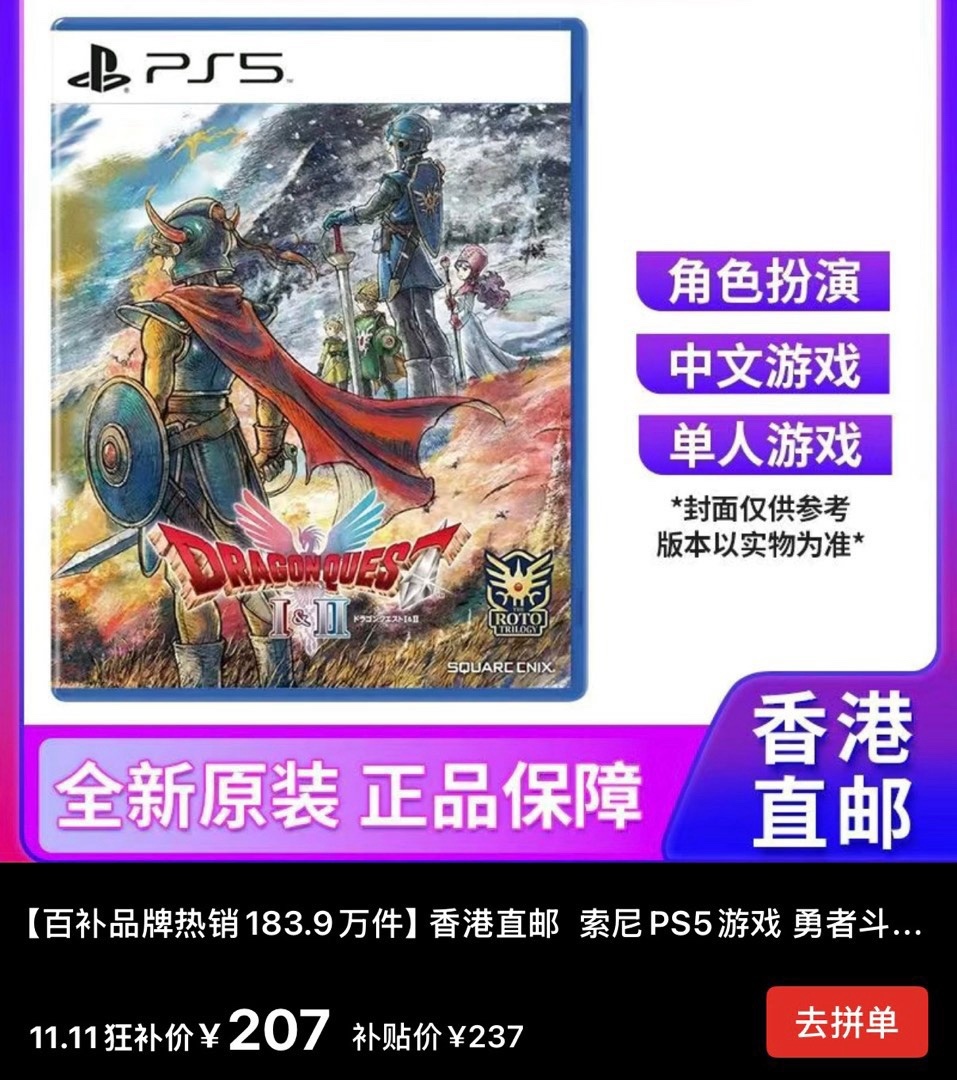 勇者斗恶龙1+2港版新史低207(仅85券)