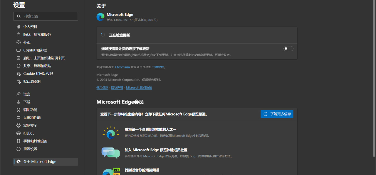 打开“设置”,点击“关于Microsoft Edge”,如果显示“正在检查更新”或者“一直转圈圈”的情况,就表明已经禁用成功。如果“转圈”结束,显示“正在进行更新。请等待几分钟,然后刷新页面”也是表明禁用成功,不必担心。如果没被禁用执行,你基本到那个界面就已经在更新了。