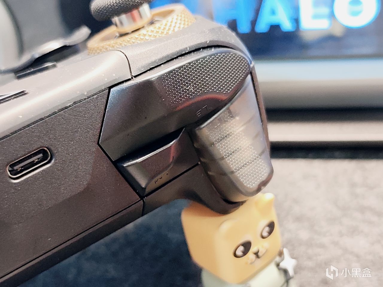 5PAO背部的设备切换钮也支持玩家在PC/IOS/SWITCH/安卓不同设备之间使用,并且手柄还搭载了2.4G接收器和蓝牙5.0,基本算是做到了全平台适配。扳机方面新增杠杆传力弹片,支持线性扳机和微动扳机,并且可以通过扳机锁进行切换,操作上非常方便。