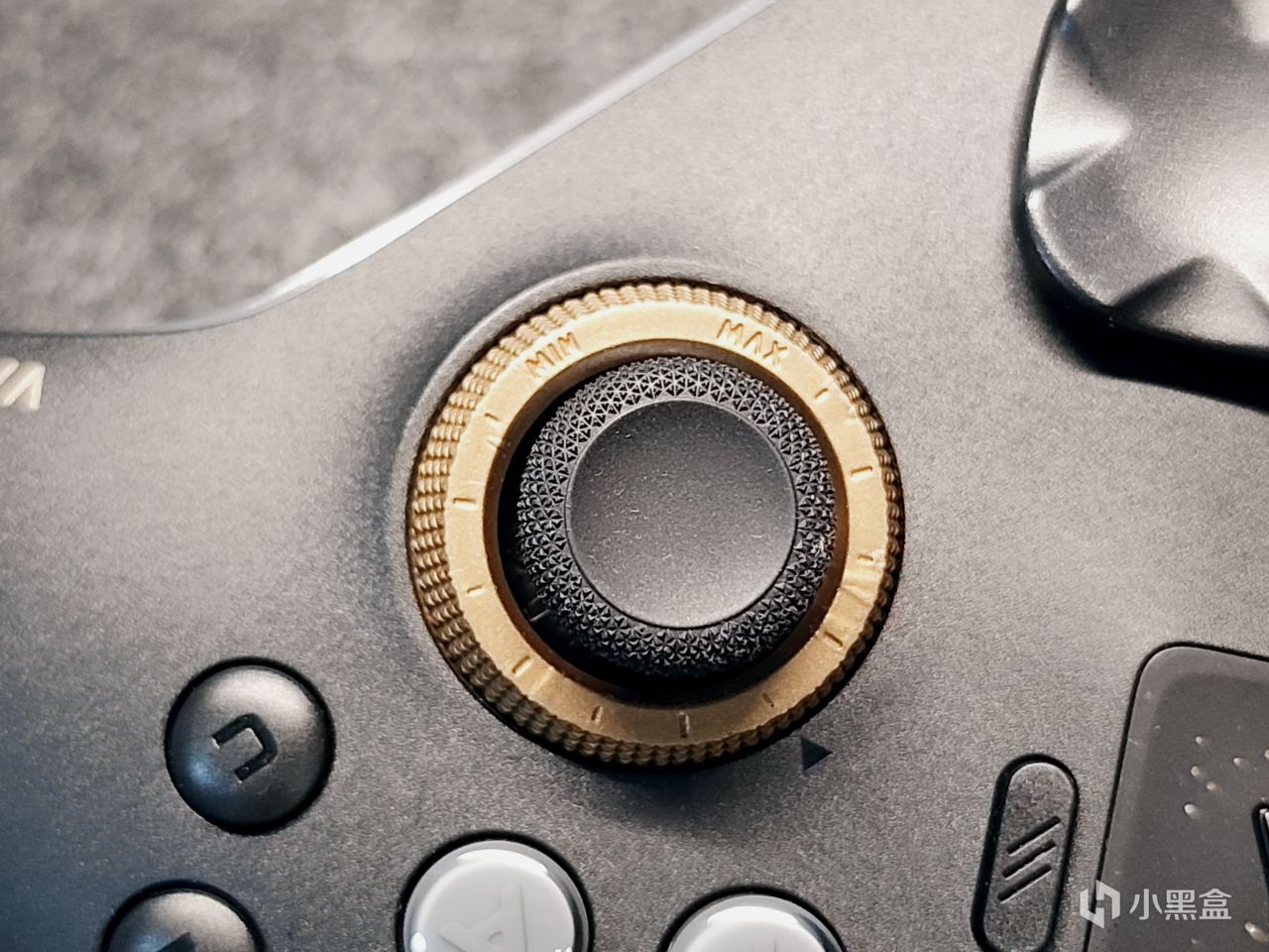 当玩家顺时针拔动外圈的轮盘时,摇杆的阻力也在随之提高,搭配游戏的体验效果也从走位来到了精细瞄准,也可以保留最小阻尼的左摇杆用来走位,而用最大阻尼的右摇杆来进行射击瞄准,游戏中非常实用!