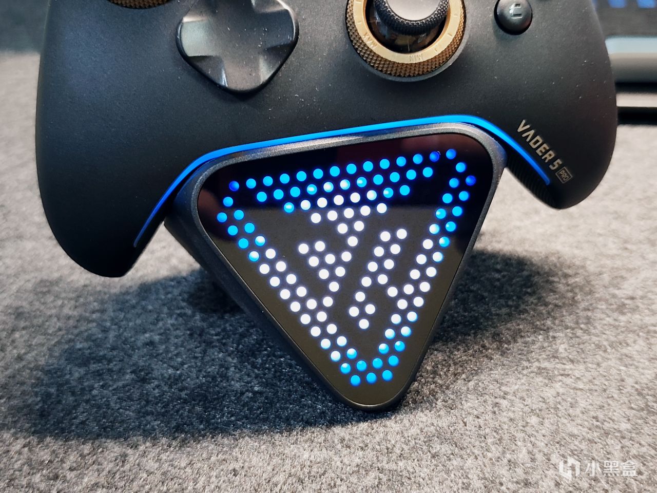 与黑武士4PRO相比,5PRO给人更直观的感受则是空间布局更“开阔”。不仅手柄底部有着八爪鱼5同款的环绕式RGB,背后还用上了和八爪鱼同样的可拆式背键。