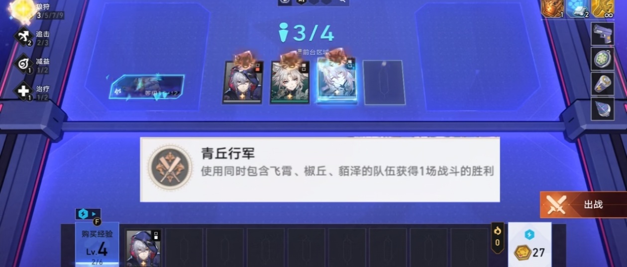 比如说青丘行军 使用同时包含飞霄、椒丘、陌泽的队伍获得1场战斗的胜利