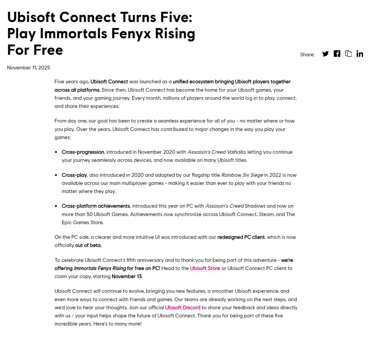 这些年来,育碧平台持续推动游戏体验不断革新: