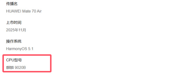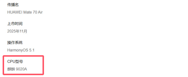 此次华为Mate 70 Air在商品页上不仅明确标注了处理器型号,还罕见地提供了麒麟9020A与麒麟9020B两个版本供用户选择。