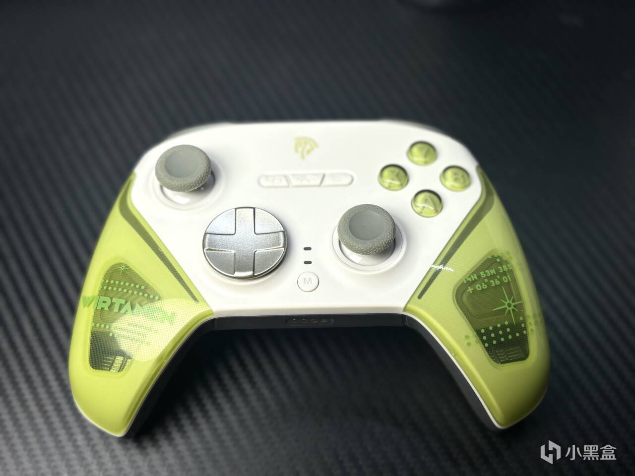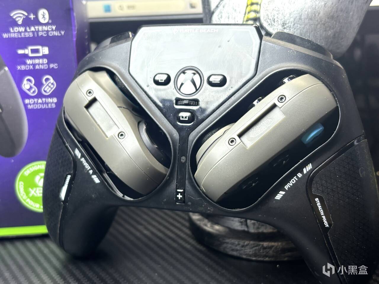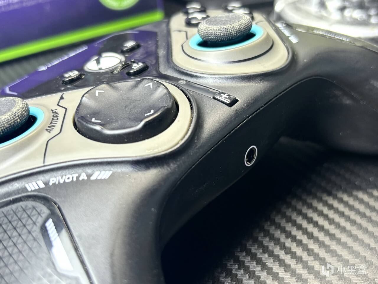 搖桿和扳機都是標準的霍爾傳感器,手柄在底部有一個3.5mm的耳機接口,烏龜海岸直接把超人聽覺塞進了手柄裏面,插上耳機即可選擇自己想要的音頻模式,可以調節例如人聲增強,高頻和低頻的增強等,這個功能還是挺不錯的,在我看來它其實就像一個變形金剛一樣,解決了搖桿和按鍵有時候不可兼得的矛盾,震動和按壓反饋都非常出色,同時受衆也比較廣,除了動作遊戲外,喜歡玩格鬥遊戲的玩家也可以入手,各種佈局應有盡有。不過缺點也很明顯,就是貴!同時因爲這個轉換模組的存在,導致手柄顯得比較厚重。