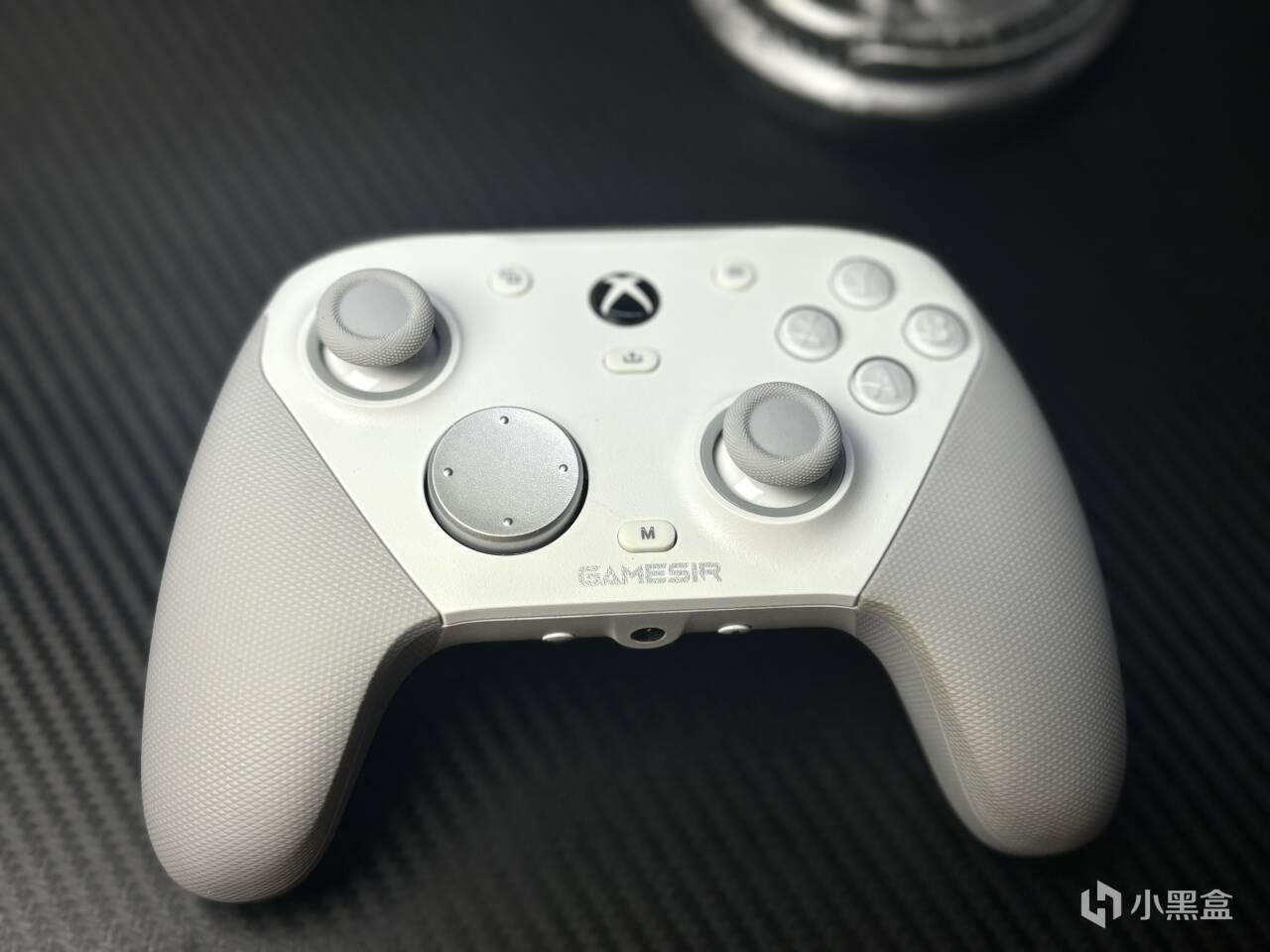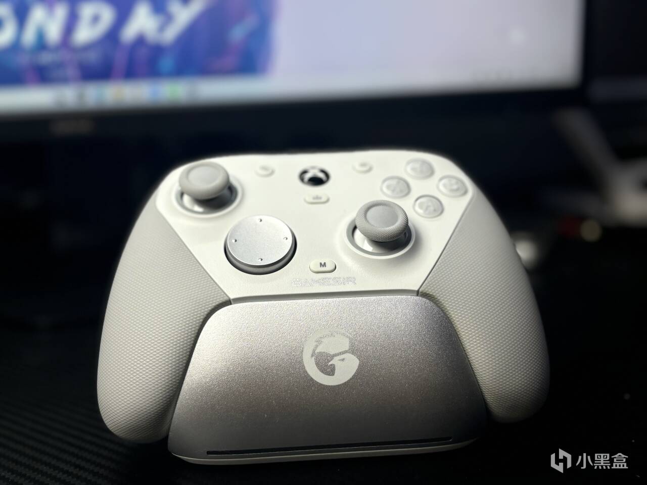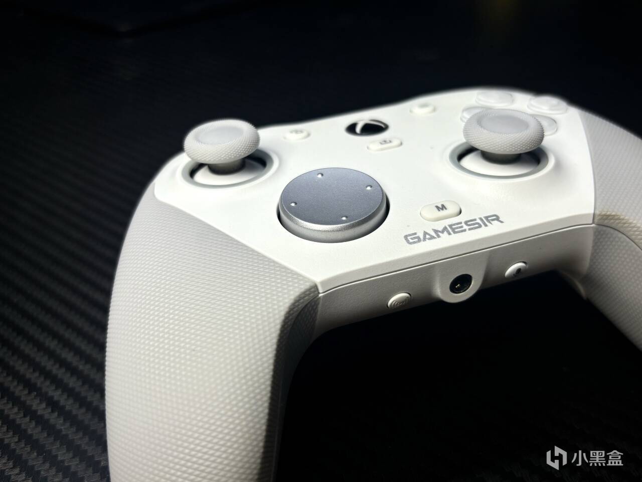 搖桿方面,使用的是TMR磁變阻搖桿,它可能不是第一個使用該搖桿的手柄,但是它一定是第一個搭載了該搖桿的Xbox授權旗艦無線手柄。無論是控精準度,採樣速率還是抗干擾,都遠超普通的霍爾搖桿。作爲xbox授權的手柄,那麼底部的3.5mm接口肯定必不可少,特別是拿它玩一些大作,把畫面投屏到電視上,坐在沙發插上耳機,就能非常愉悅的享受遊戲,同時考慮到聯機遊戲需要開麥,它還配備了一個閉麥鍵!我只能說,想的太全面了。肩部有額外的兩個小肩鍵,加上大背鍵,這個配置我就不用多說了吧,最關鍵的還是授權方面,擁有原生信號震動(G7Pro也會配備充電底座。)作爲旗艦級手柄來說,性價比算是非常高了。