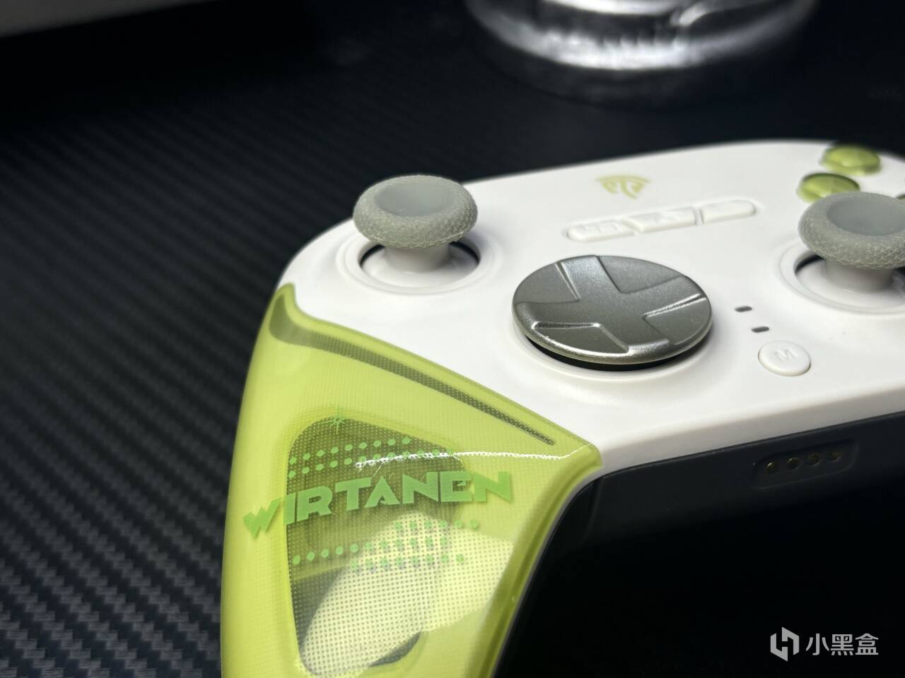 我手中這款是耀石灰配色,因爲我在買PS5的時候已經獲得了一個純白色的手柄,想來個灰白配,它在搖桿方面,使用的是霍爾搖桿,相比起DS5的原裝搖桿來說,壽命肯定是大大延長了。