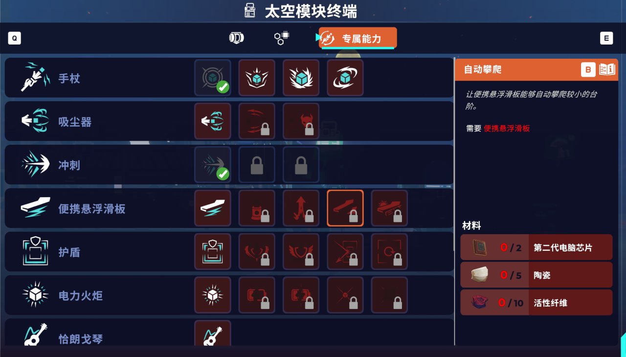 游戏是采用了“银河恶魔城”+“基建”的设定,地图上也会有很多“能力锁”的区域,在游戏一开始我们的活动范围非常有限,只有解锁了更强的能力,比如勾爪、悬浮滑板、恰朗戈琴等,才能设法去到更远的地方。