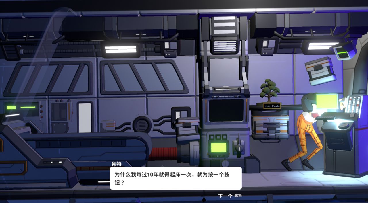 游戏的开局颇有几分黑色幽默的色彩,故事的起点在未来的2219年,主角肯特是一个宇航员,刚刚从自己的冻眠舱里被唤醒。