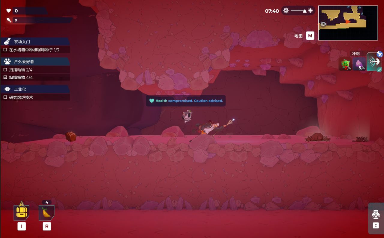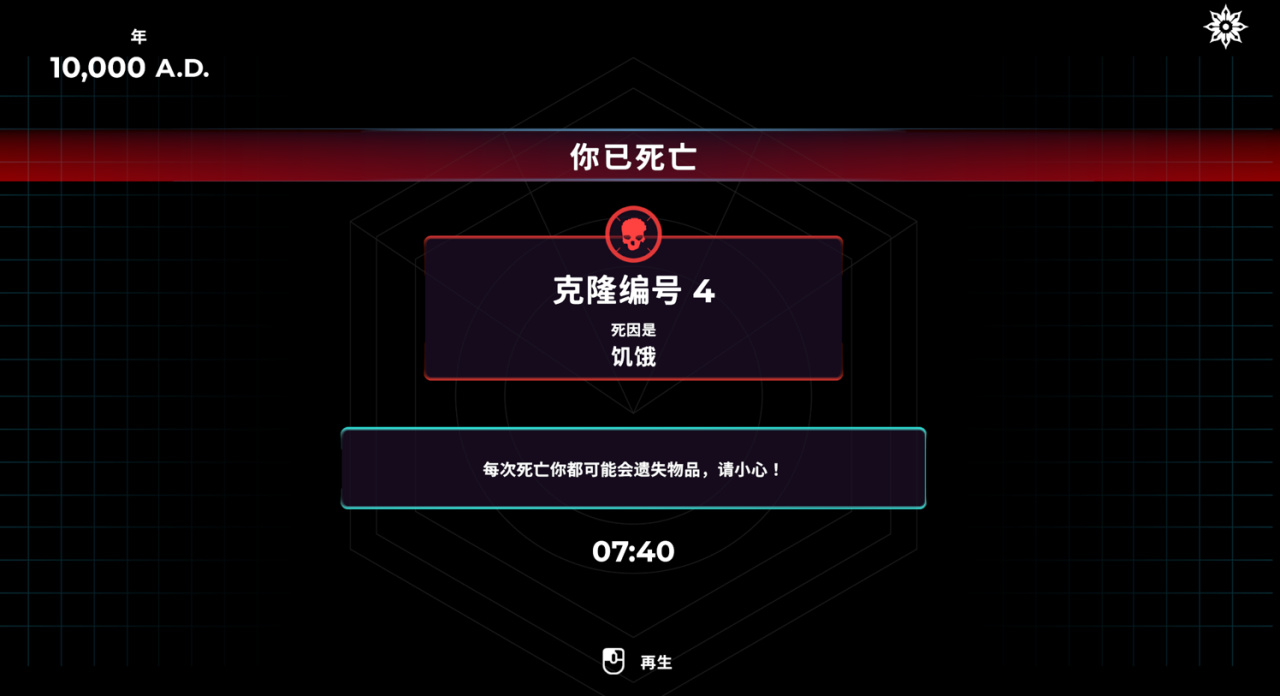 但就算一不小心饿死了,游戏也不会立刻结束,毕竟我们本身是克隆体,我们这条命死了,飞船会立刻造出一个新的出来,这让游戏的压力变得没有那么大,但我们死亡时背包里所有的道具都会掉在原地,只能用下一条命回去捡,这个设定也是合情合理的,颇有几分科幻的意思。