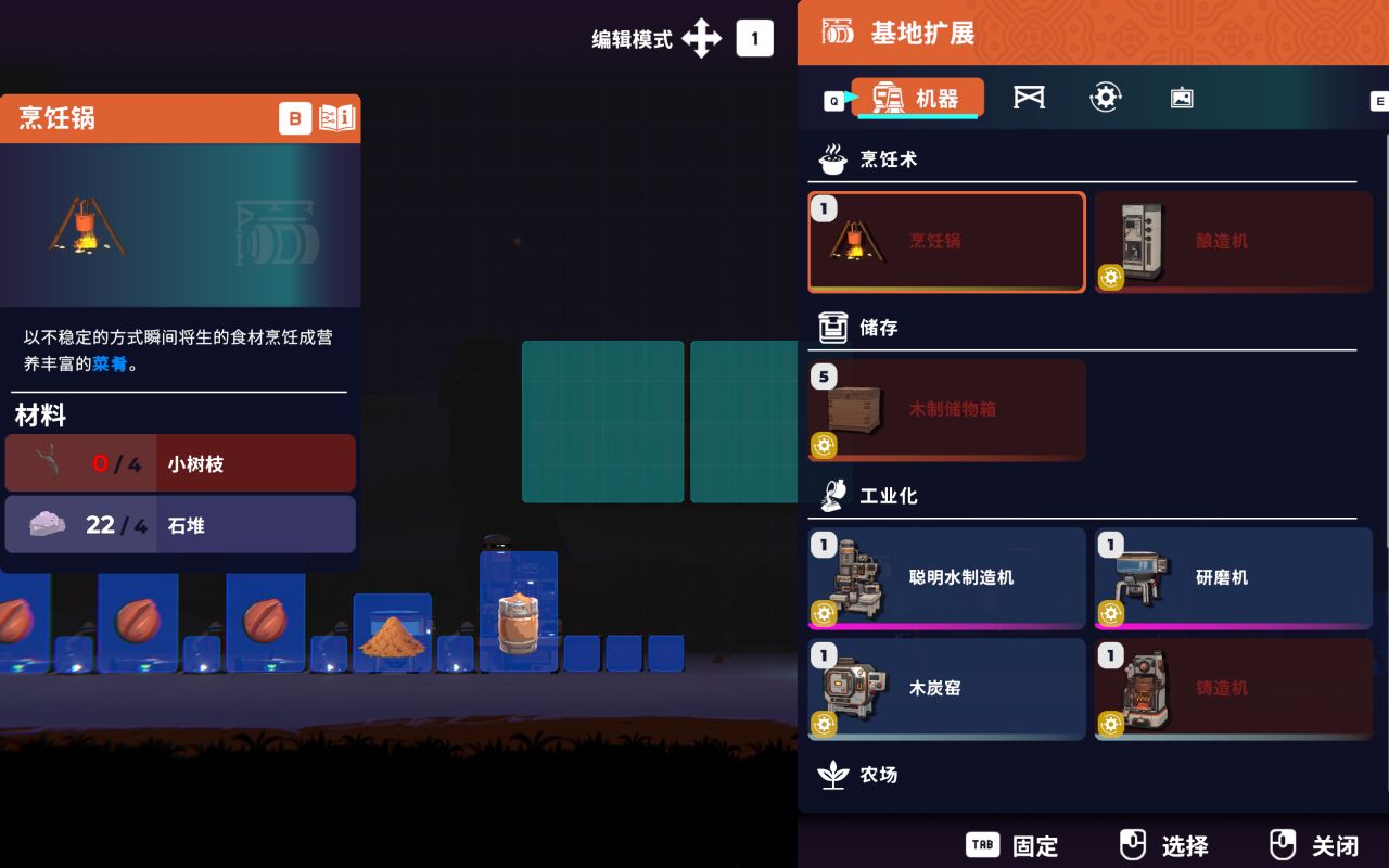 好的,那么随着我们的采集,材料已经准备好了,下一步就是制造烹饪锅。