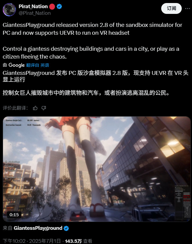 《女巨人游乐场》采用虚幻引擎5开发,支持4K分辨率与光线追踪技术,能够细致呈现建筑崩塌与物品粉碎的震撼效果。