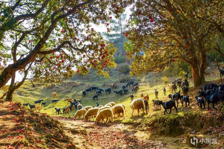 龙陵县小黑山漫山的大树杜鹃,犹如山间片片红霞。