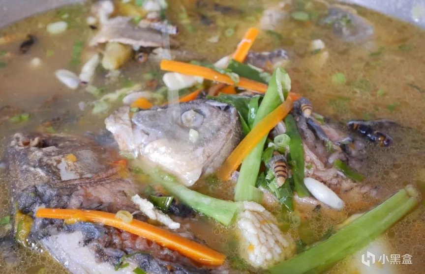 秋爽十月,保山田坝里的谷花鱼肥硕、蜂蛹满巢、棕包成熟。蜂儿、稻花鱼、棕包米同时入锅煮制。棕苞米有淡淡苦味,煮过的蜂蛹让鱼汤更加鲜甜,可谓吃虫界的盛宴。
