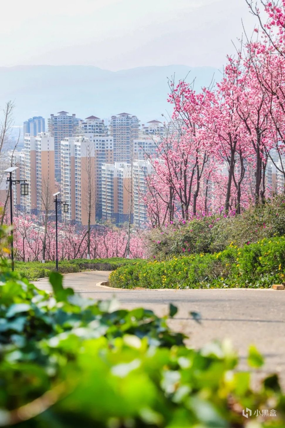 在保山隆阳区,从保袖东路驾车就能看见的殷红,渲染开了出东山片。映入眼帘的樱花,在不经意间,成了每个游子每年春的念想。(隆阳区的东山森林公园樱花海)