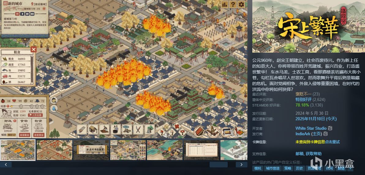 一款以城市建设为核心的模拟经营游戏。在北宋南宋的各个历史阶段,玩家需要扮演一城主官,大兴土木,修建士农工商各项设施。