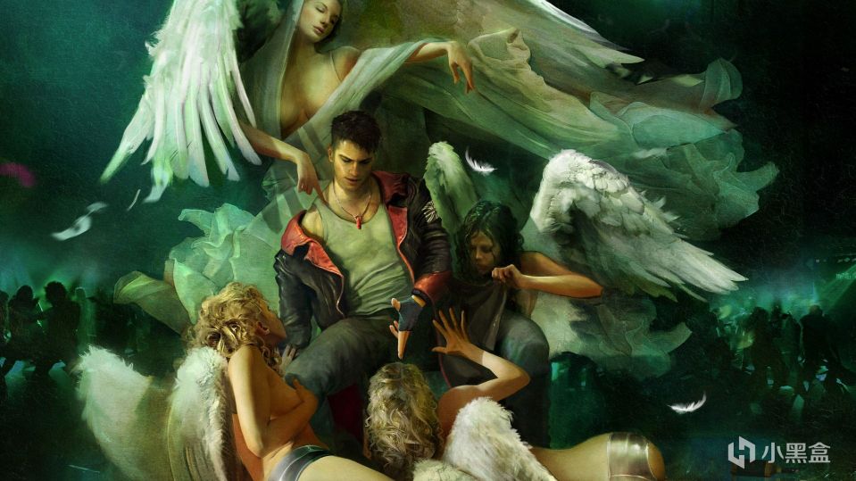 当初《DMC》的宣传图有一张非常经典,就是但丁坐在一群天使中间,坐姿不羁而又霸气。